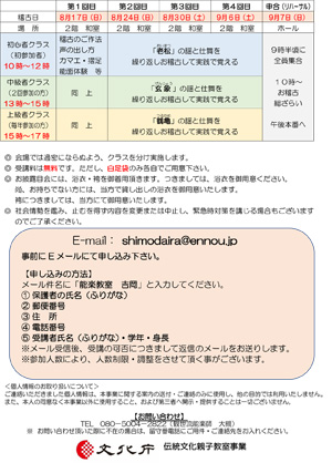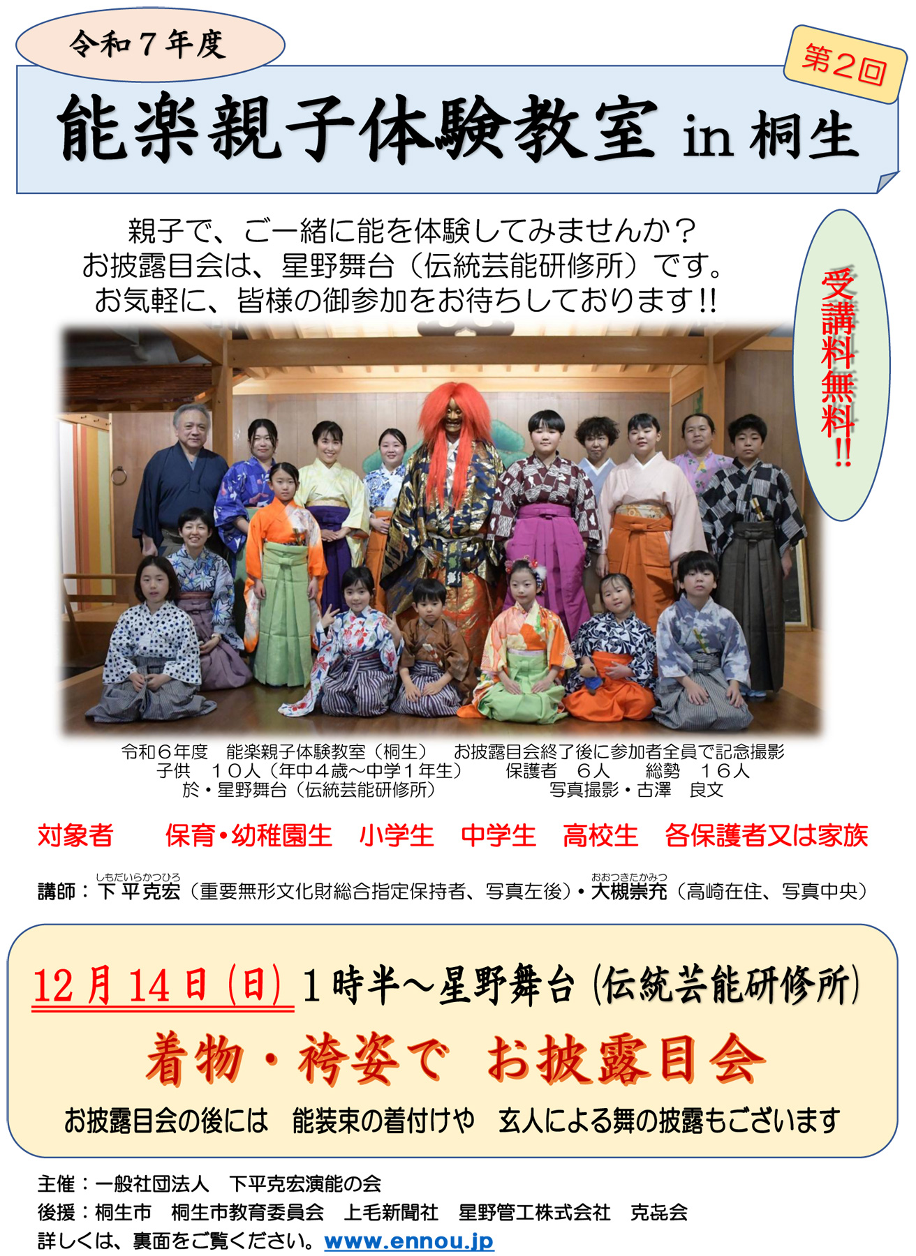 ◎ 受講料は無料です。但し、白足袋のみ各自でご用意下さい。